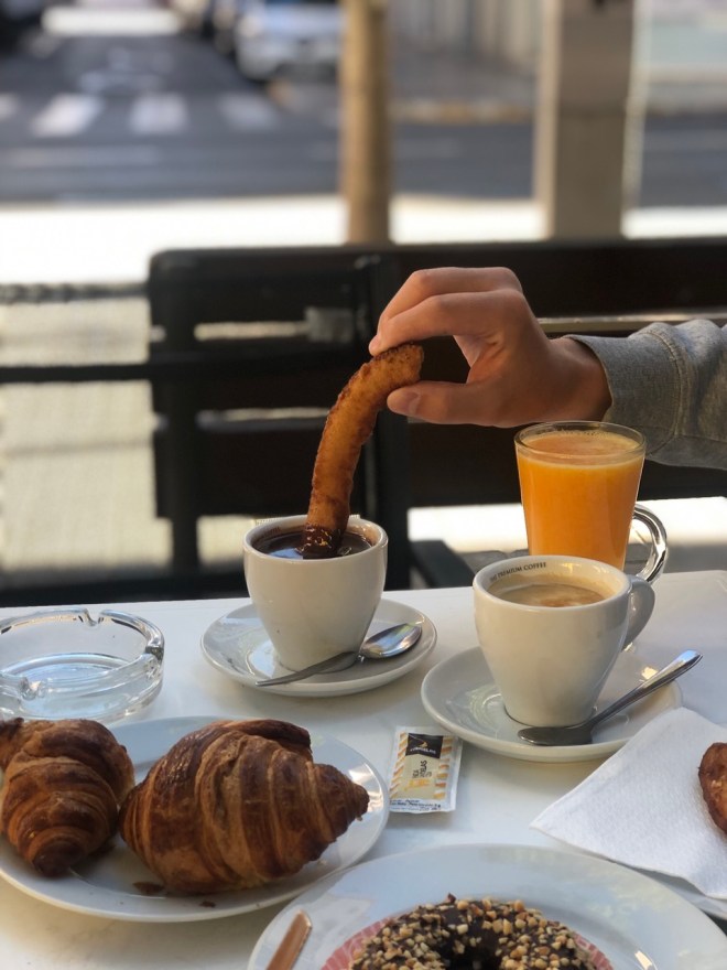 Breakfast – Churros dipped in Chocolate.